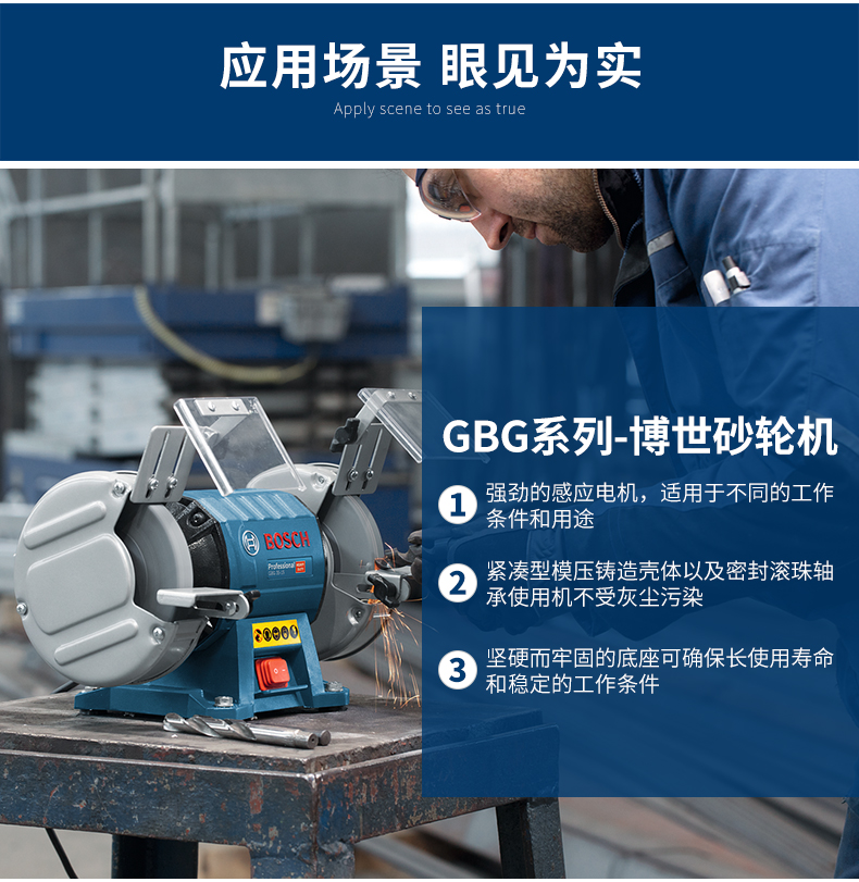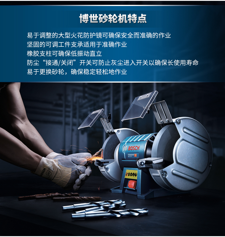 博世(Bosch)台式砂轮机立式台磨机金属抛光打磨机磨刀机 GBG 60-20(600W 200mm)