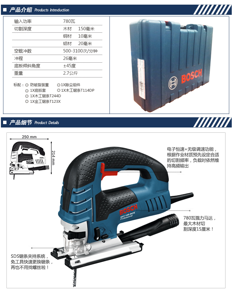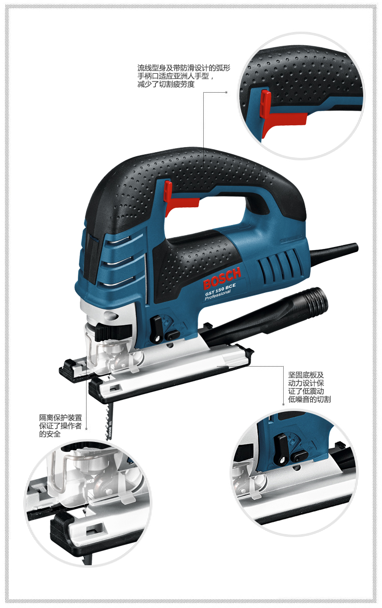 博世BOSCH 曲线锯GST150BCE金属木材塑料切割机曲线切割锯 标配(780W 无极调速)