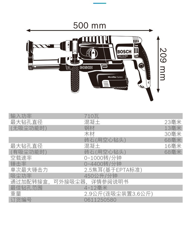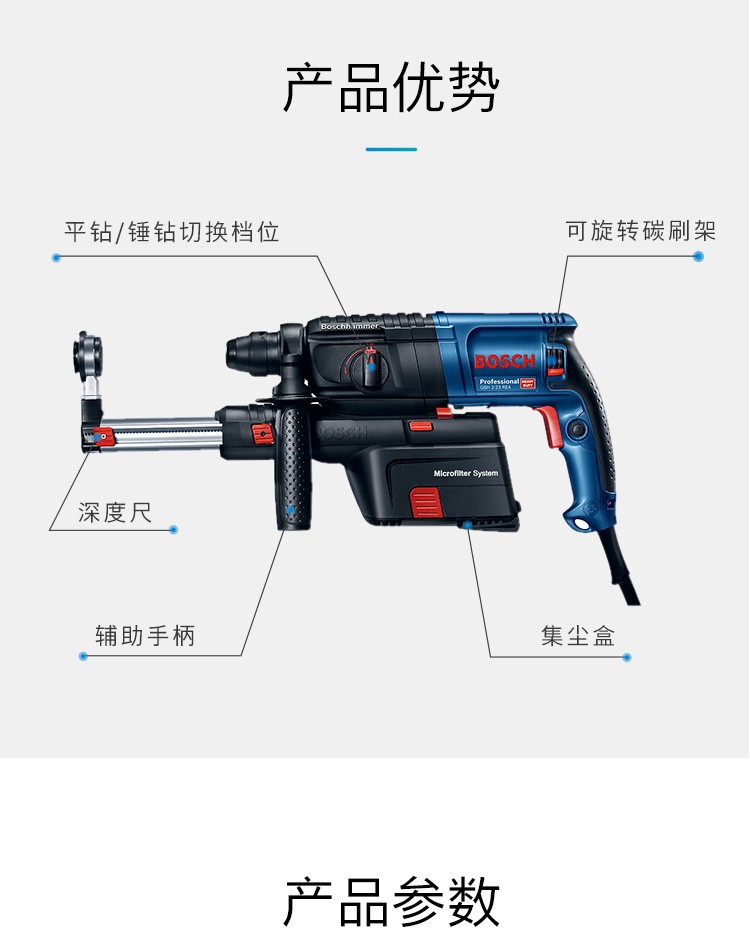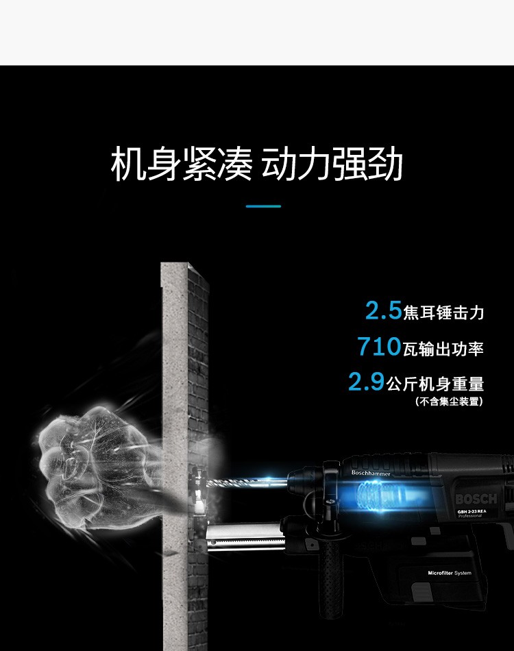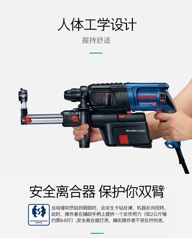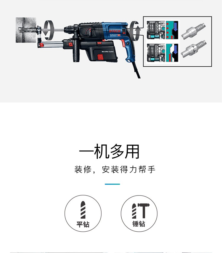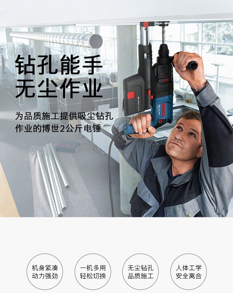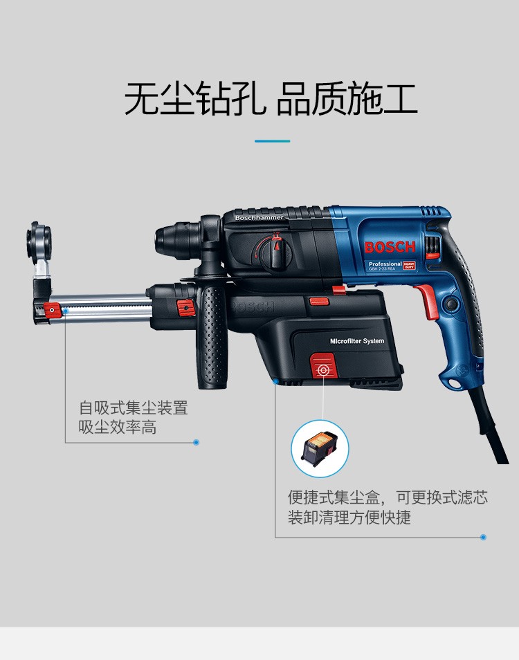 博世(BSOCH)冲击钻GBH2-23REA电锤双功能电钻锤钻带吸尘器电动工具 标配+博世电锤钻头