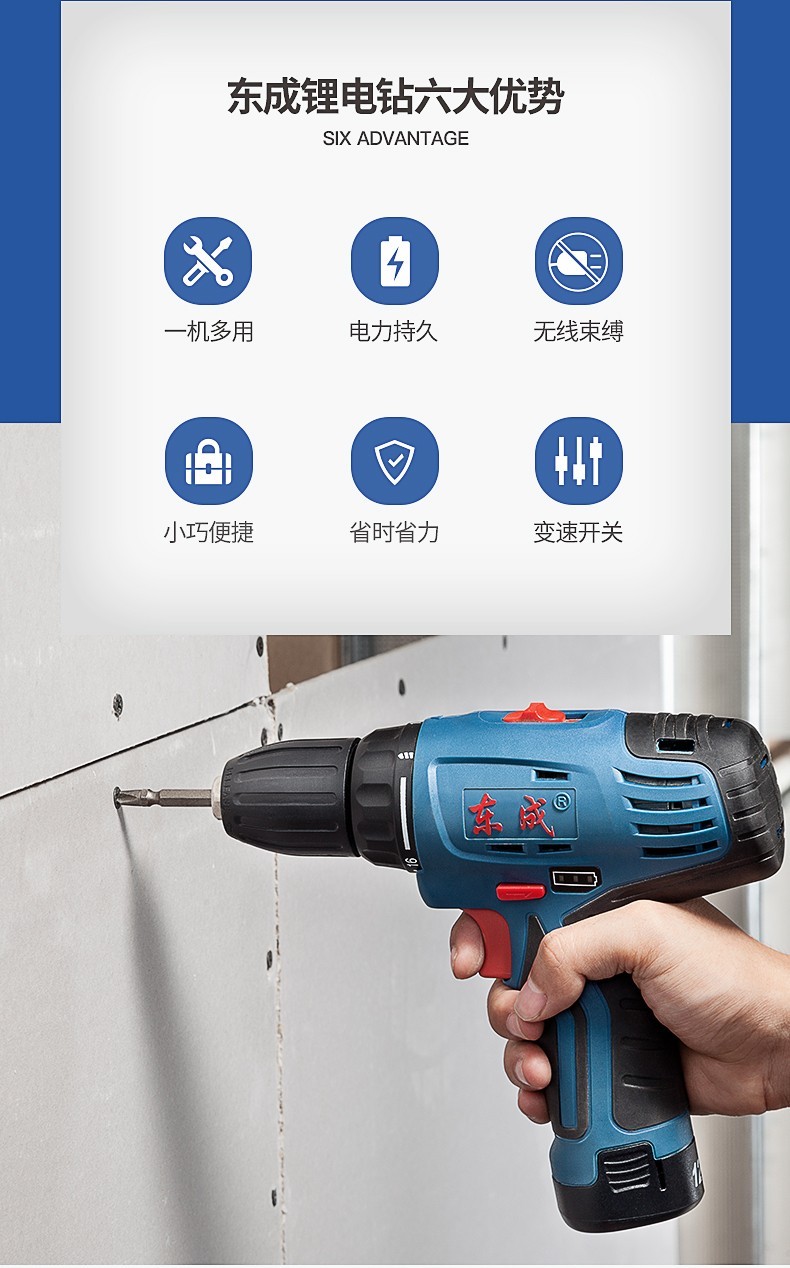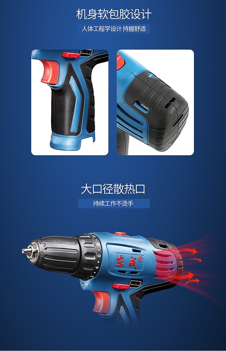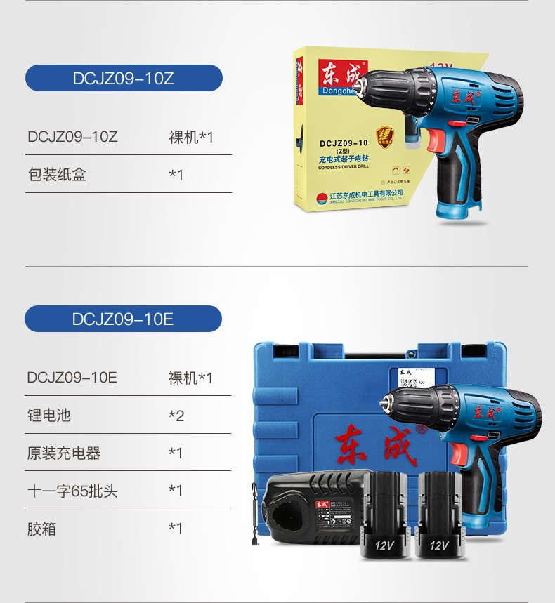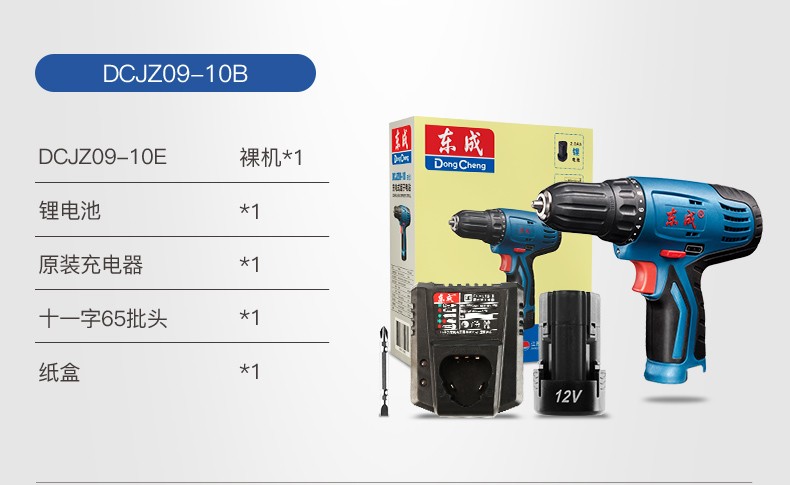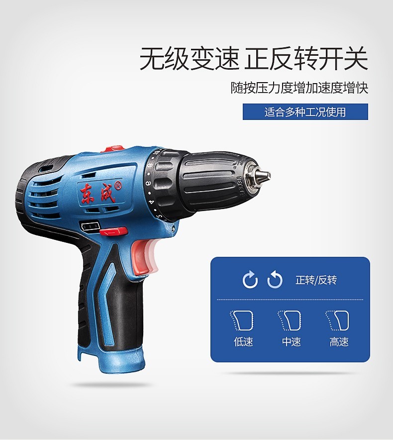 东成 锂电钻12V双速正反转调速充电式手电钻套装电动螺丝刀起子机多功能家用 双电单速DCJZ09-10E