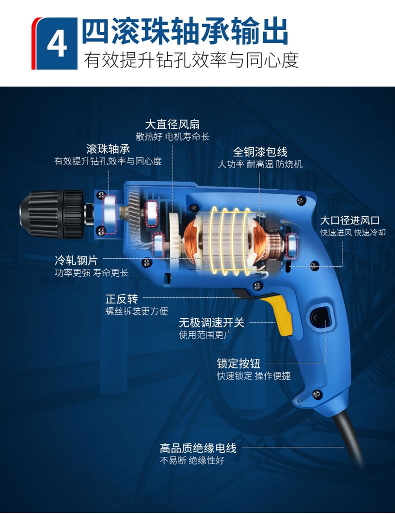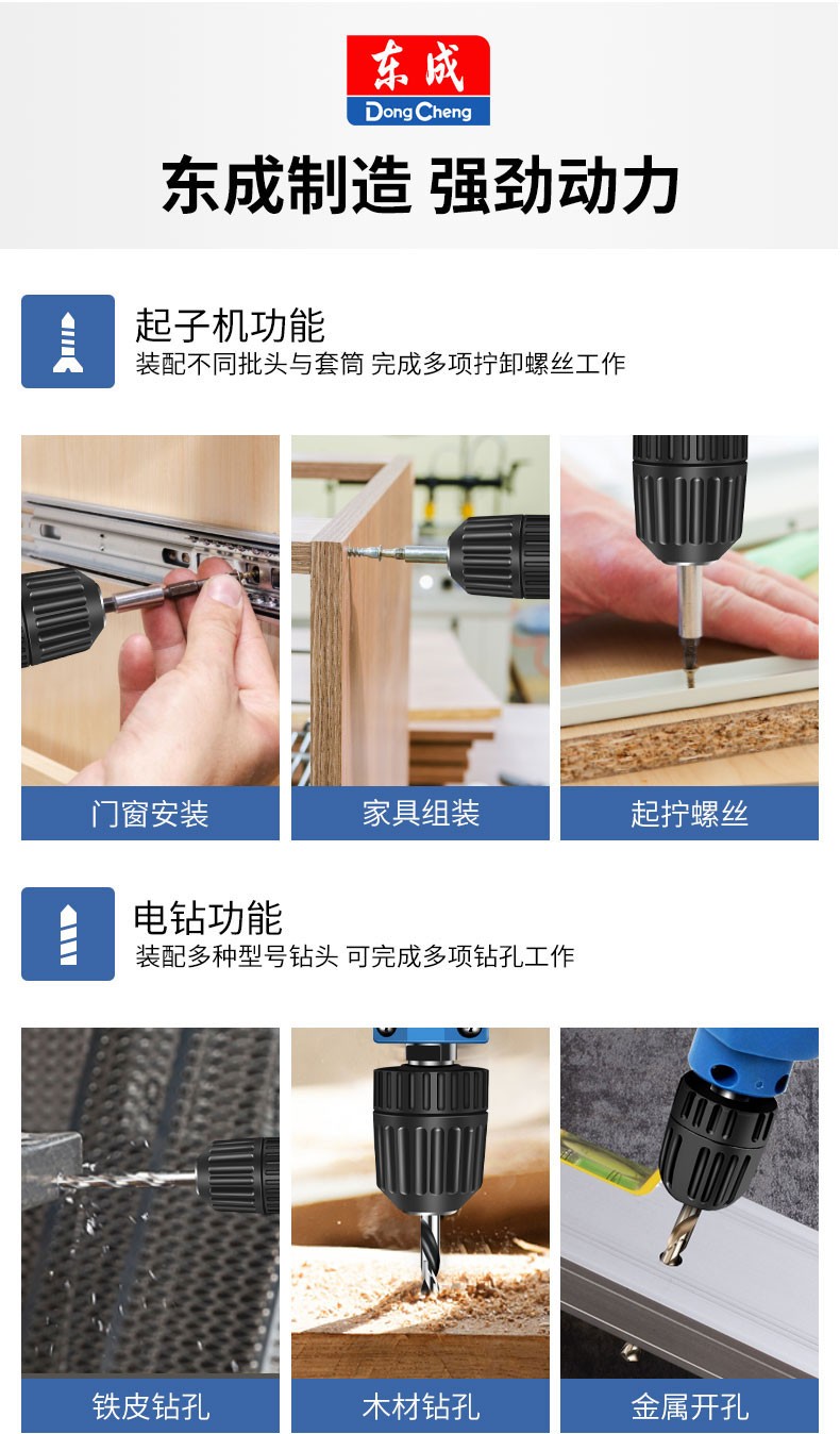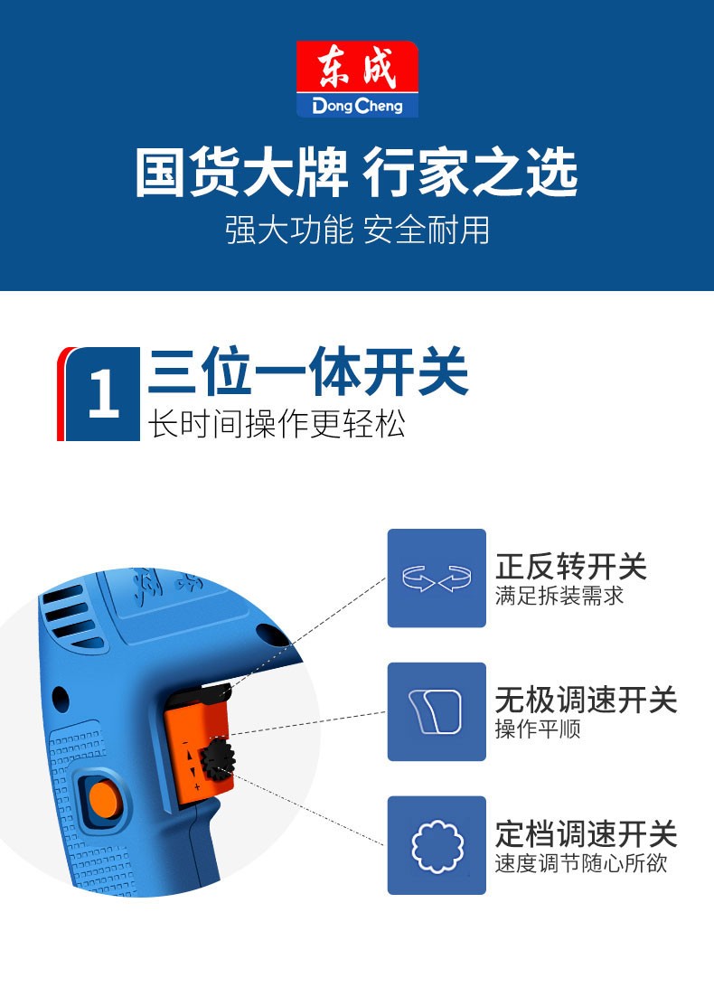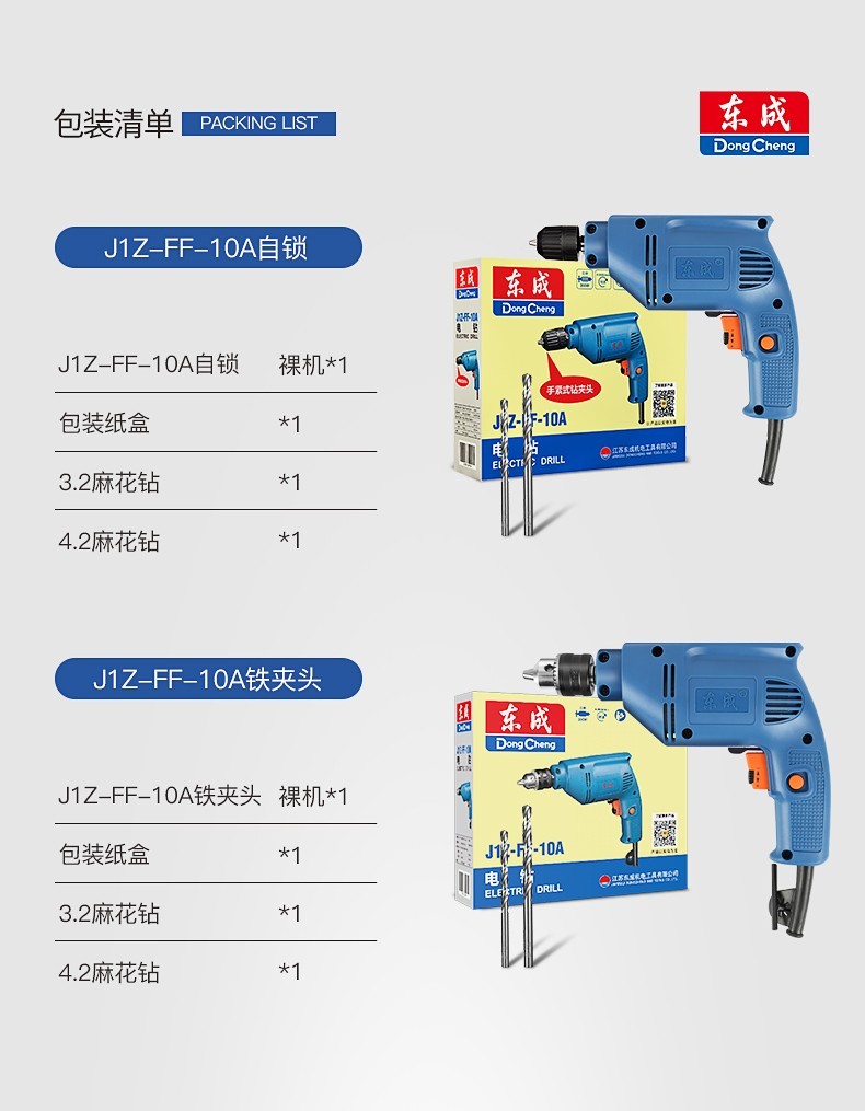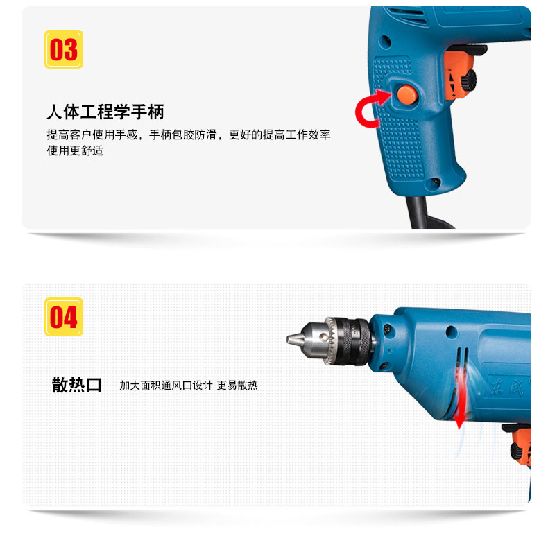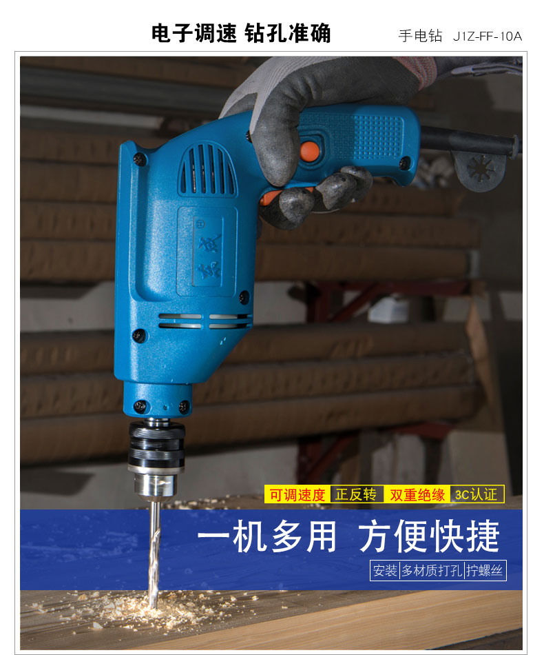 东成手电钻家用电动螺丝刀多功能电动工具J1Z-FF-10A自锁手电钻10mm东成电动工具 J1Z-FF-10A【300W】自锁夹头+多用附件