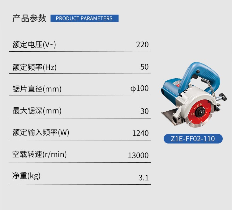 东成切割机水电开槽机瓷砖混凝土切割手提电锯1240W云石机五金电动工具Z1E-FF02-110