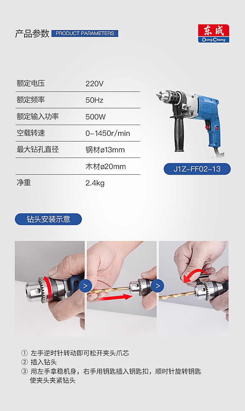 东成 手电钻正反转可调速大功率开孔电钻电动工具 1450转 J1Z-FF02-13