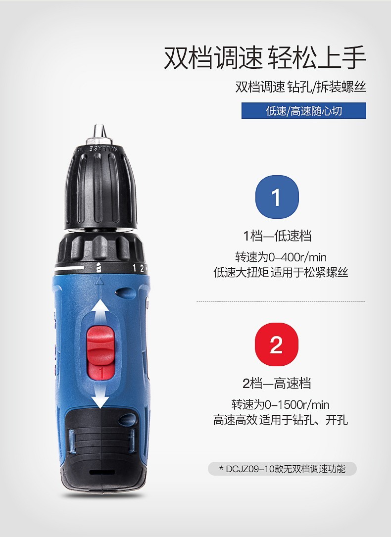 东成 锂电钻12V双速正反转调速充电式手电钻套装电动螺丝刀起子机多功能家用 裸机/无电无充单速DCJZ09-10Z纸盒无赠品