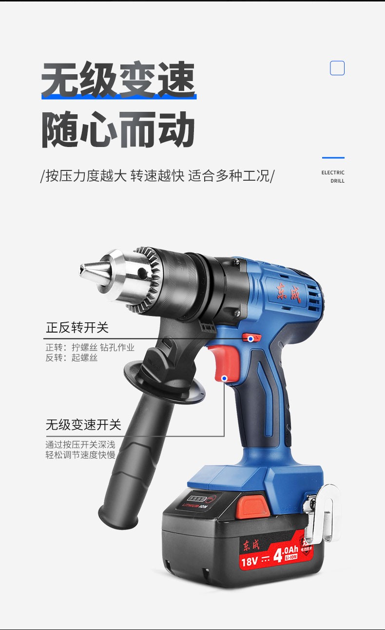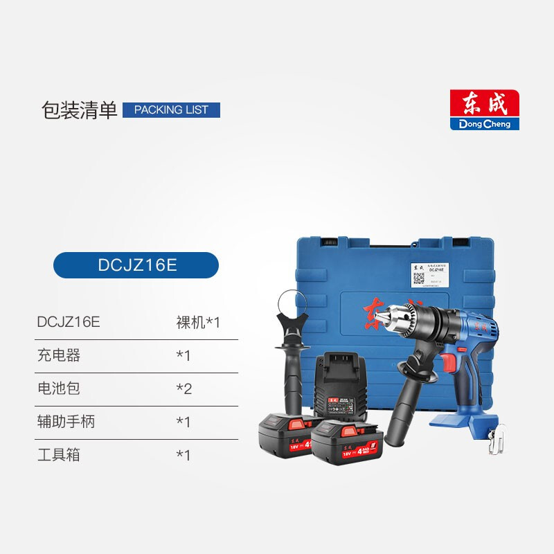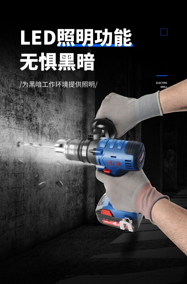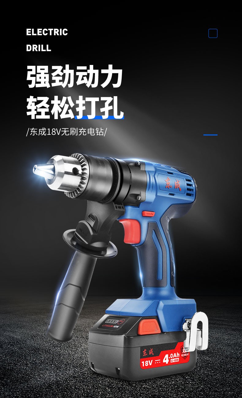 东成 无刷锂电钻大功率充电式小型电转钻 双电工业级手枪钻孔电动工具 DCJZ16E 无刷双电18V
