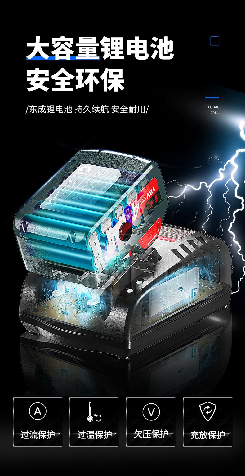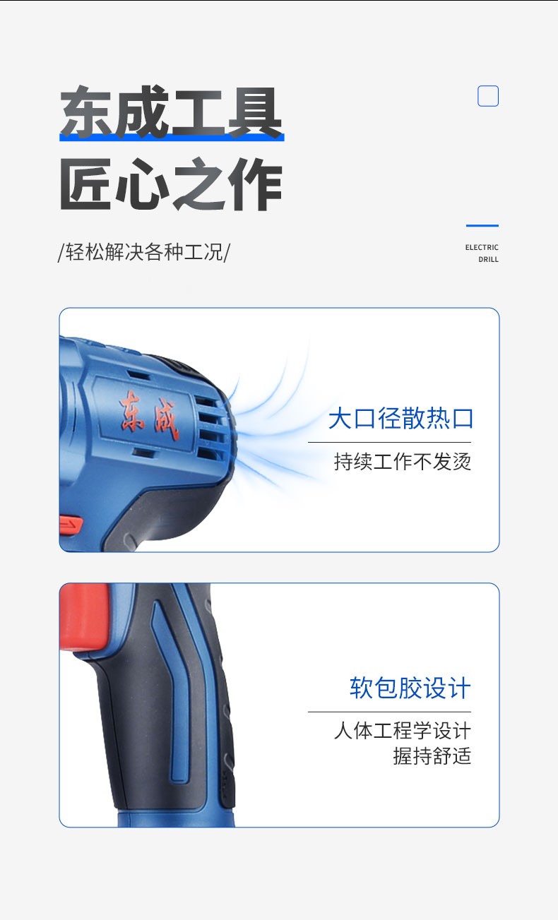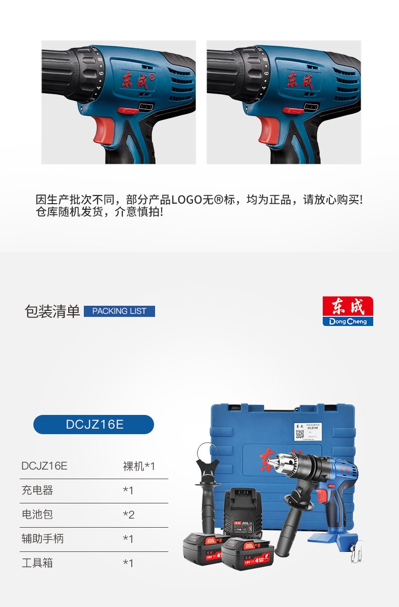 东成 无刷锂电钻大功率充电式小型电转钻 双电工业级手枪钻孔电动工具 DCJZ16E 无刷双电18V