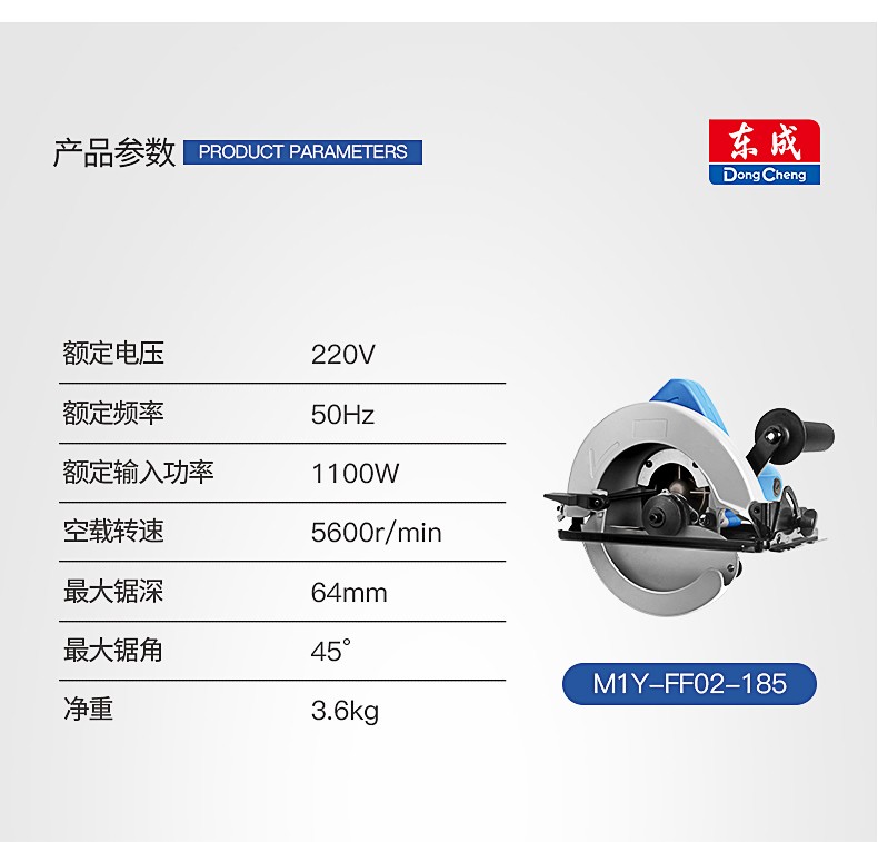东成 电圆锯手提电锯 7寸木工板铝塑板切割圆盘锯工具 M1Y-FF02-185