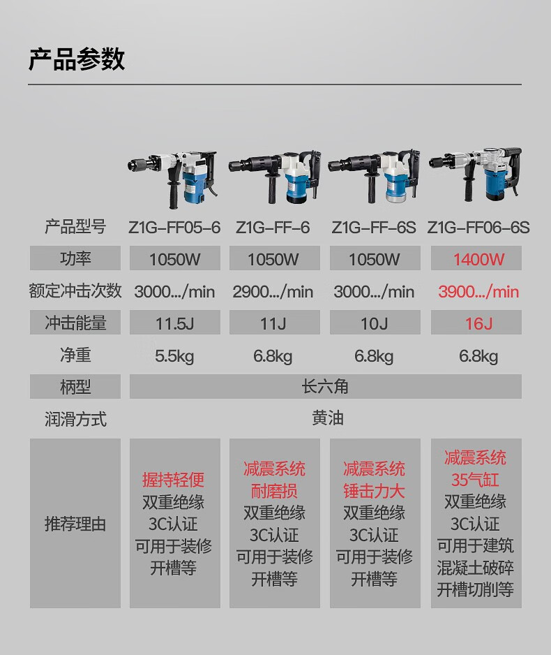 东成 电镐大功率电镐单用重型拆墙破碎工业级东城电镐插墙打线槽混泥土 Z1G-FF06-6S 大功率1400W 电镐