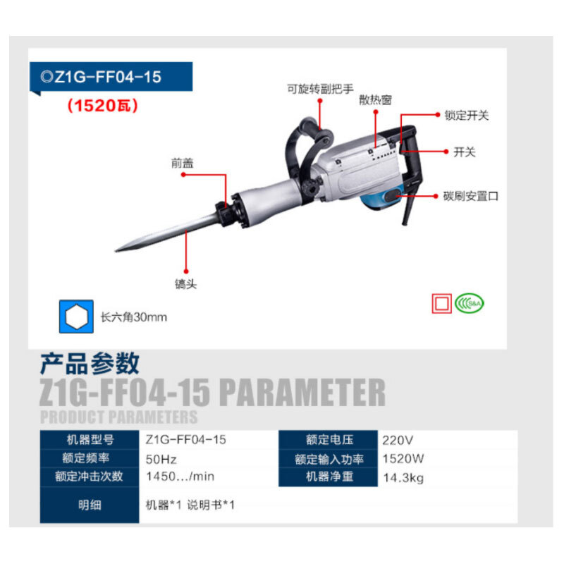 东成单用电镐 Z1G-FF04-15凿削拆墙开槽打混凝土凿破电动工具1520W