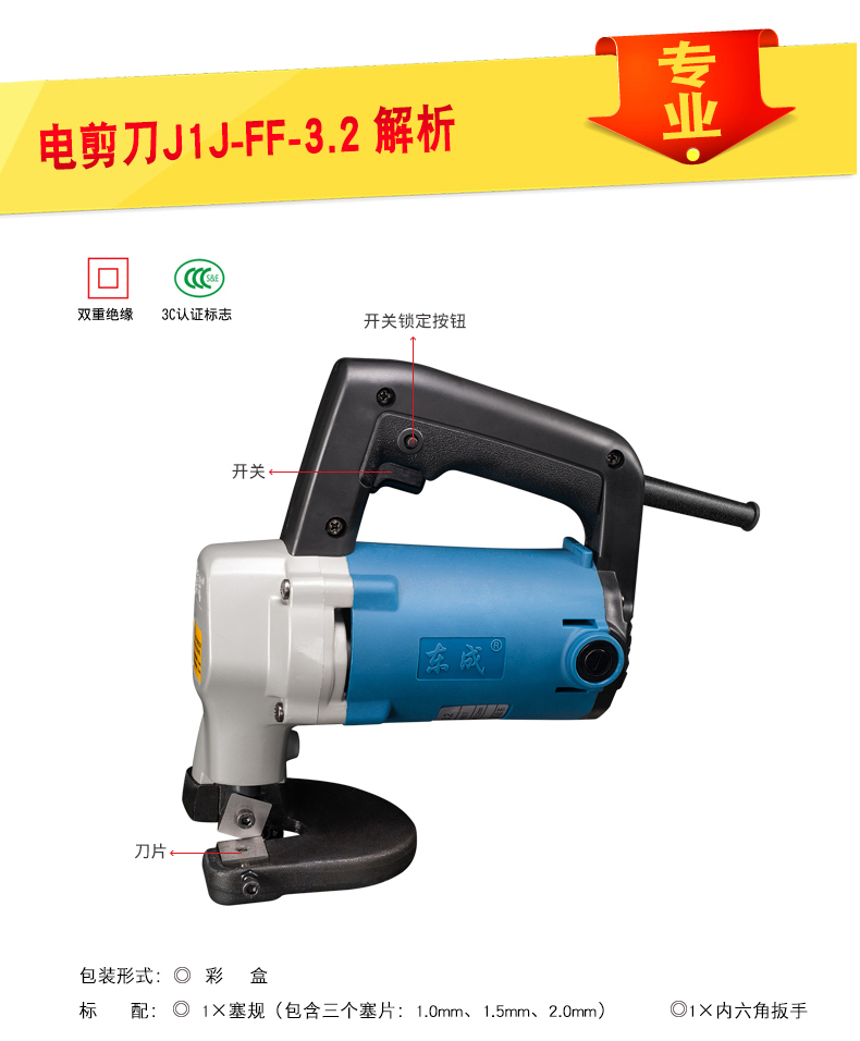 东成电剪刀FF-3.2/2.5铁皮不锈钢软钢裁剪工具铁皮剪电动东城 J1J-FF-2.5