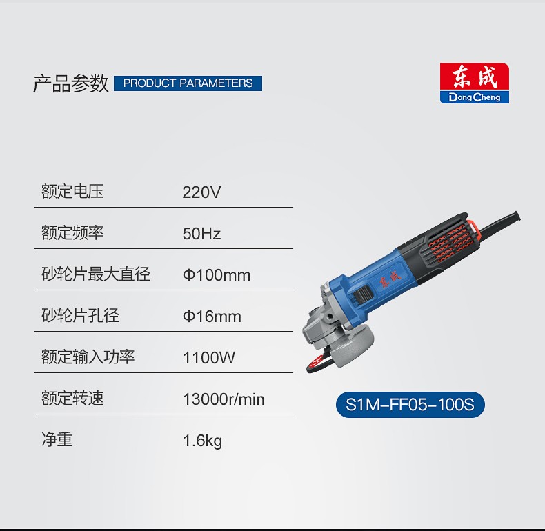 东成 角磨机大功率磨光机多功能家用手磨切割机东城电动工具 S1M-FF05-100S (1100W)