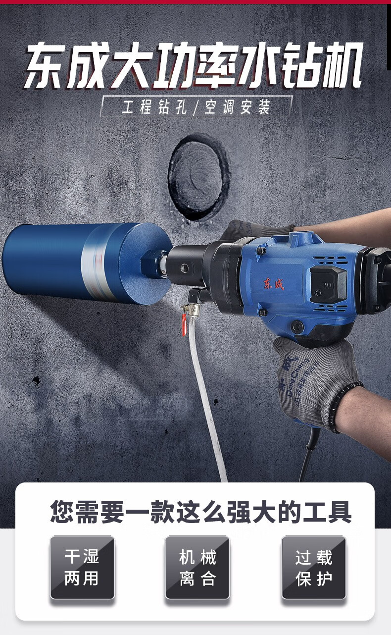 东成水钻机手持台式工程混凝土空调开孔干打湿打金刚石钻孔机东城 Z1Z-FF02-180干湿两用180mm