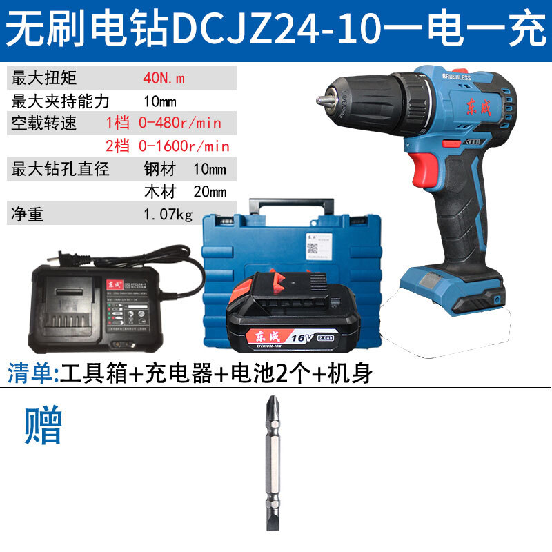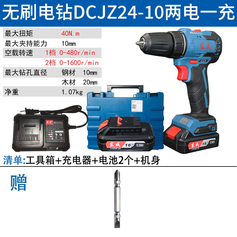 东成无刷手电钻16v充电电动螺丝刀DCJZ24-10东城锂电钻起子机 DCJZ24-10裸机 纸箱