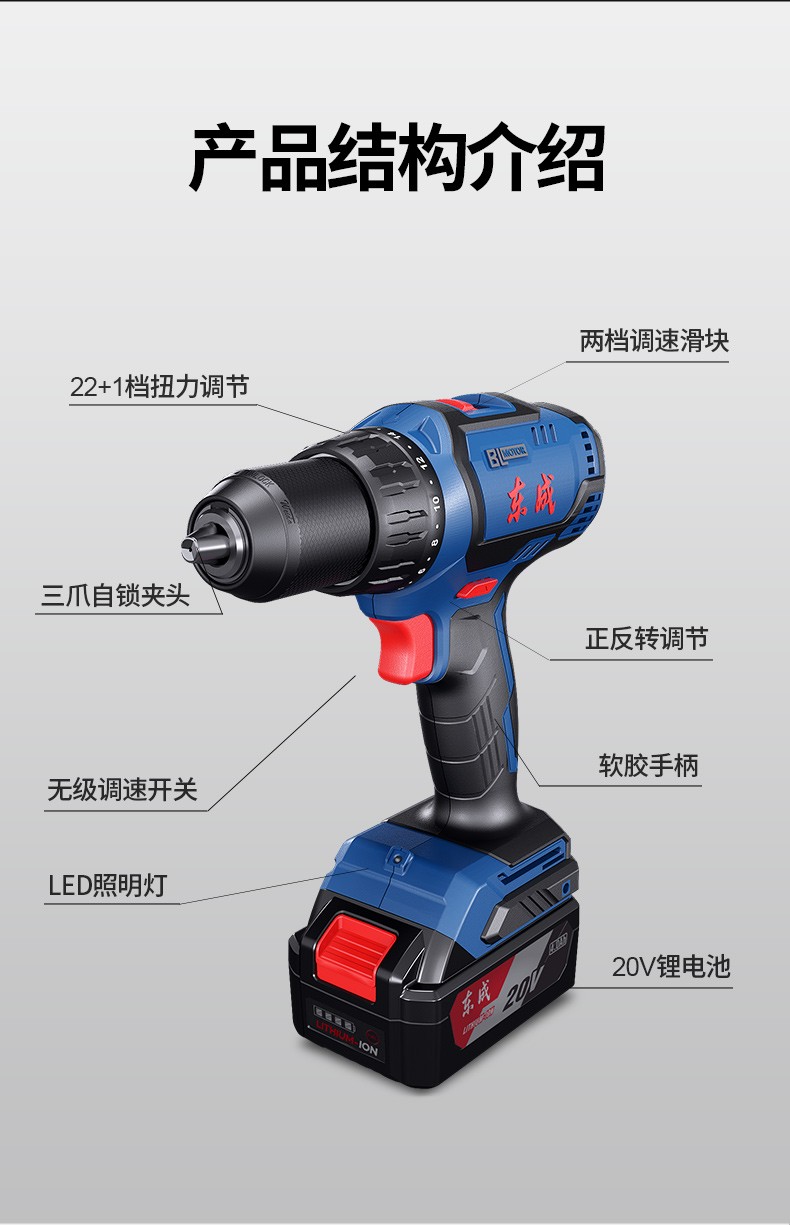 东成 无刷锂电钻20V充电式手电钻充电钻多功能家用电动螺丝刀 DCJZ04-13A 20V2.0Ah