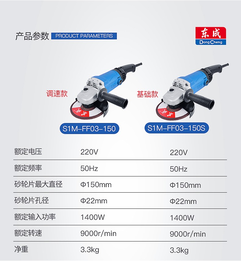 东成 角磨机角向磨光机切割机工业级大功率角磨机 S1M-FF03-150S(1400W)