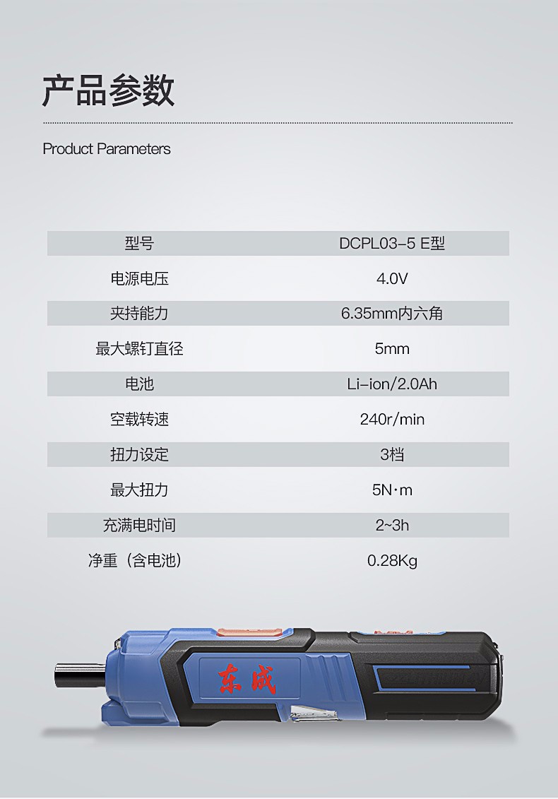 东成电动螺丝刀多用起子机家用电动螺丝批充电式批头套装五金工具套装 DCPL03-5E