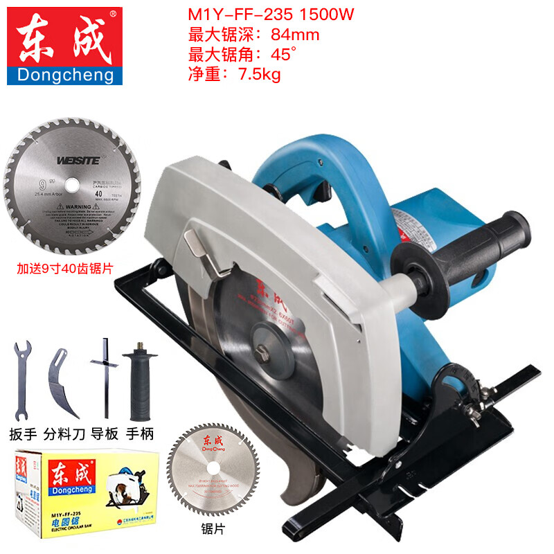 东成电圆锯手提式电锯木工板材铝塑板切割机圆盘锯东城电动工具 M1Y-FF-235(9寸 1520W)