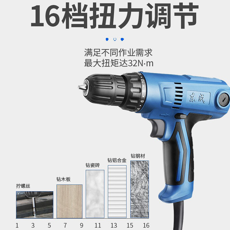 东成电钻手电钻可调速扭力调节家用起子机电动螺丝刀J1Z-FF08-10东成电动工具