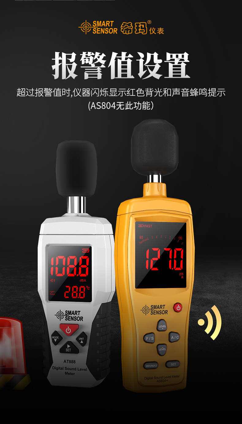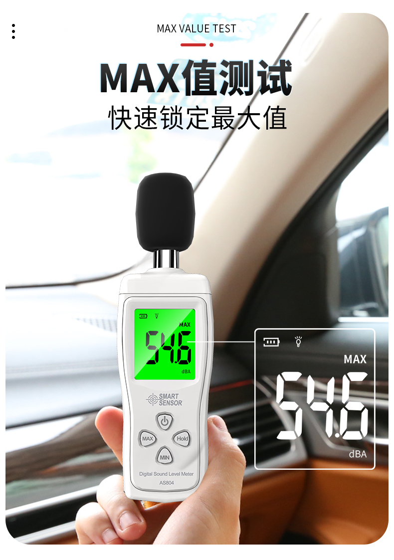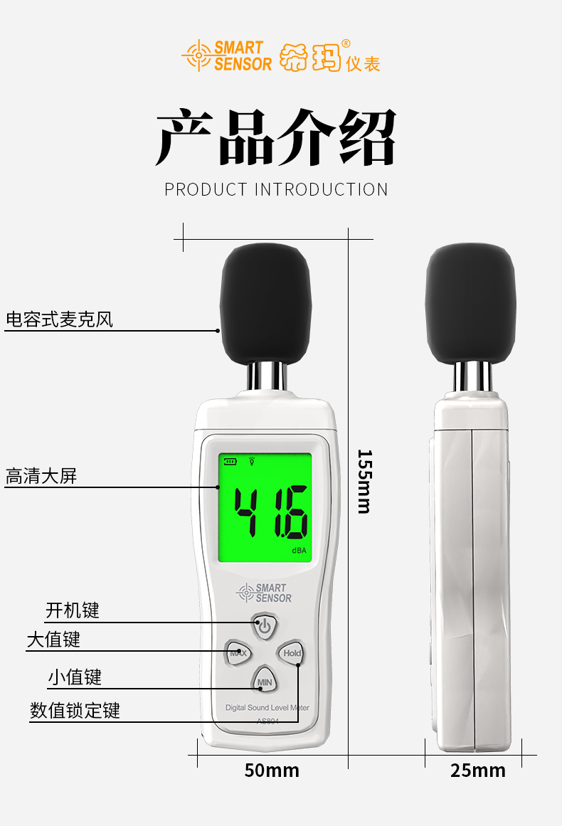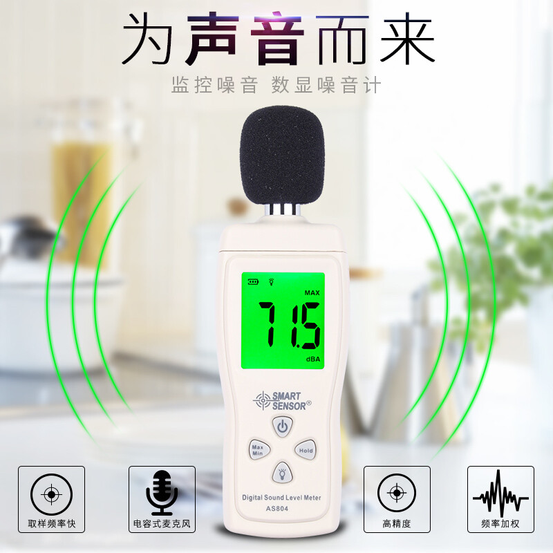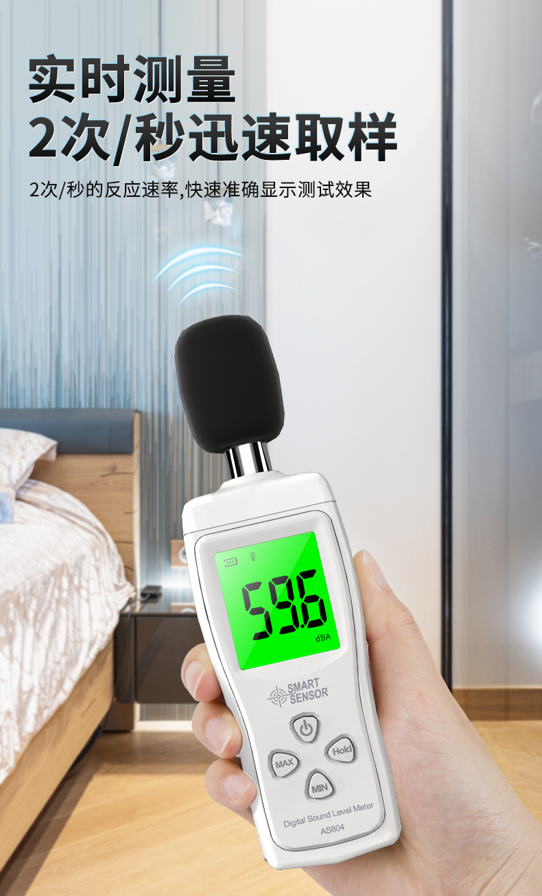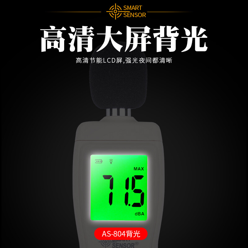 希玛AS804 分贝仪 噪音计数字分贝测试仪家用工地办公环境噪声检测仪 AS804(高清背光,自动关机)
