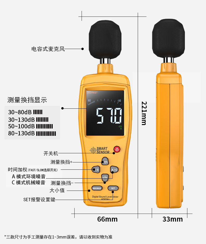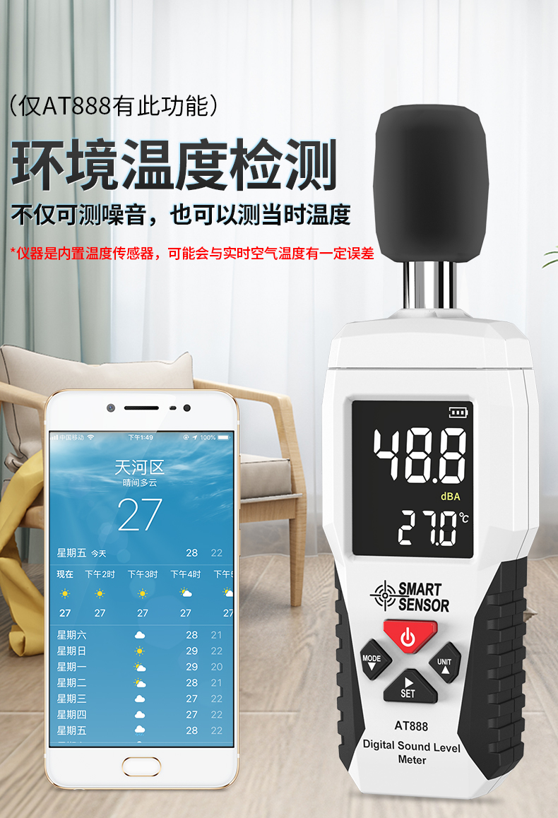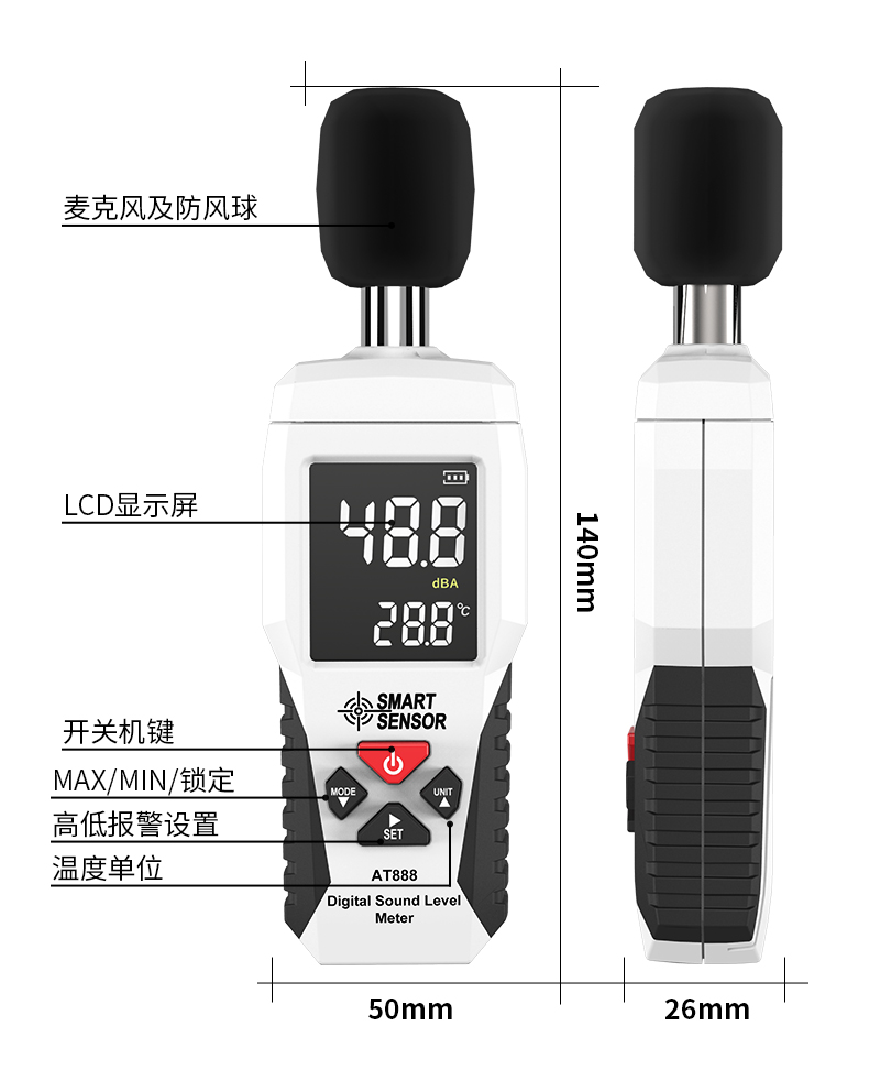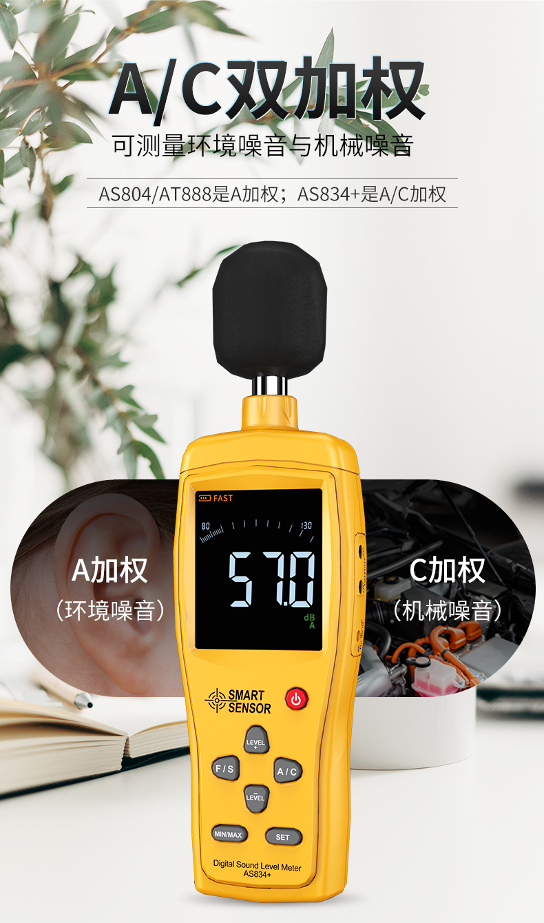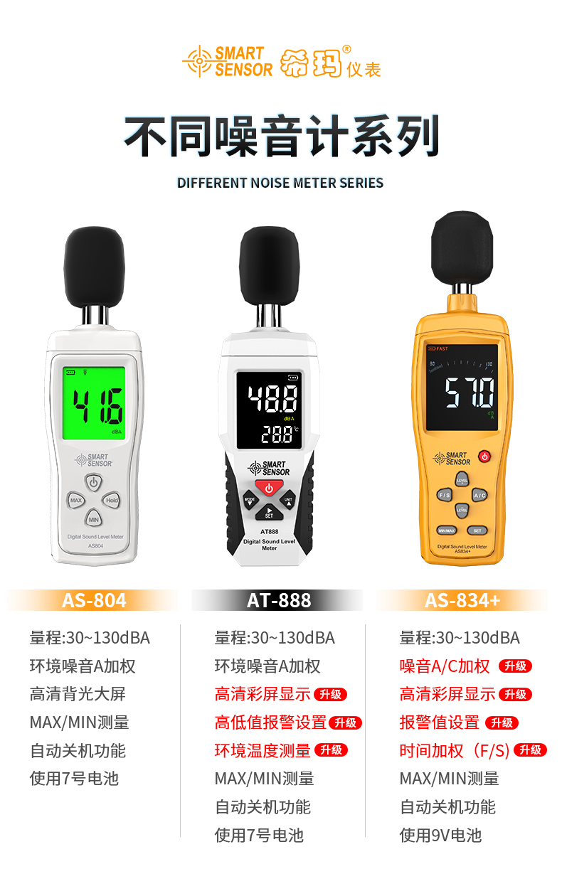 希玛AS804 分贝仪 噪音计数字分贝测试仪家用工地办公环境噪声检测仪 AS804(高清背光,自动关机)