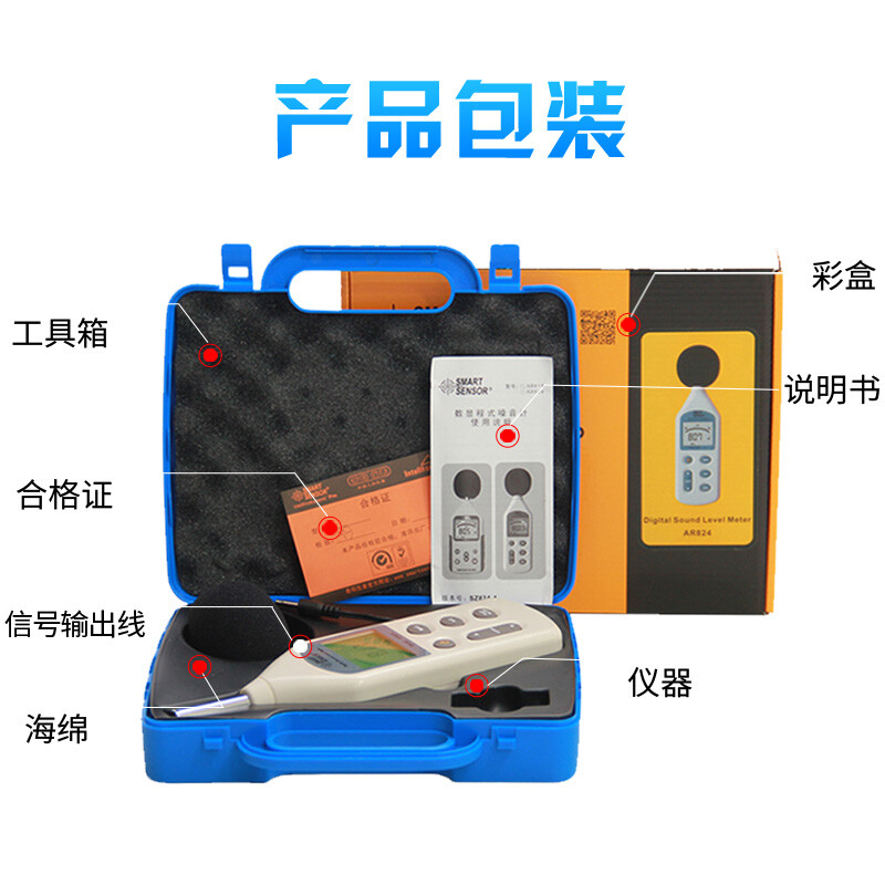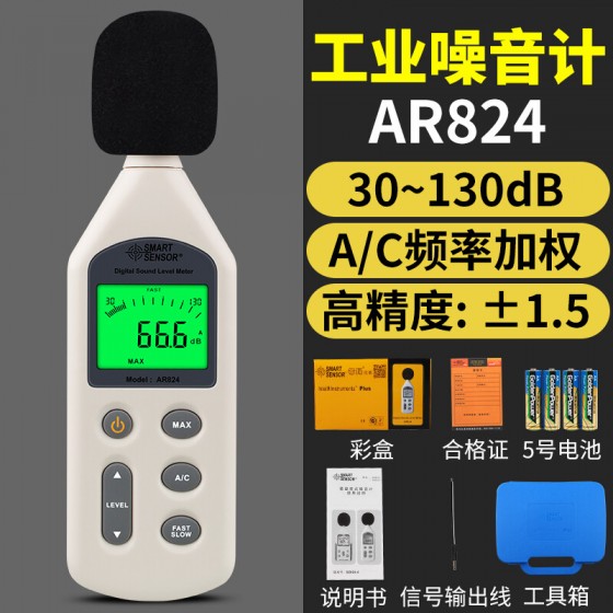 希玛噪音计 分贝仪手持式噪音测试仪工业高精度环境音量测量仪 AR824 标配(30~130db)