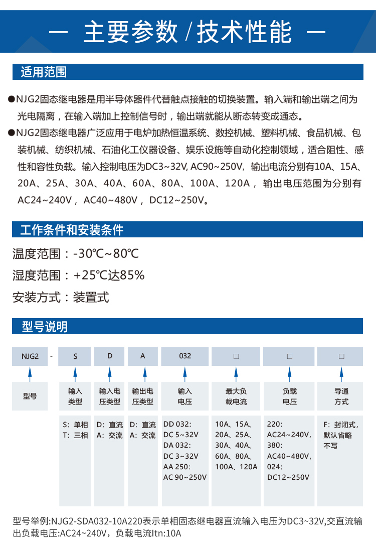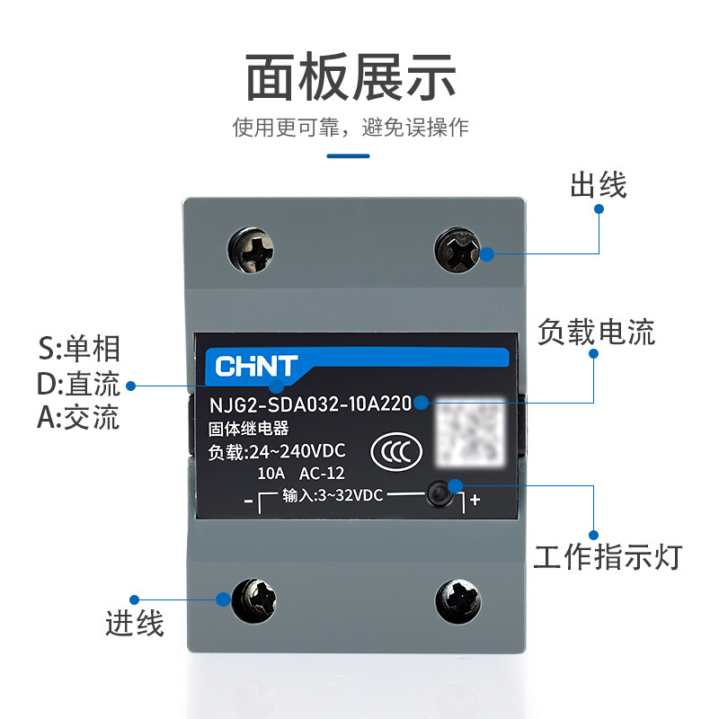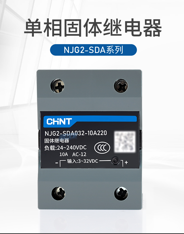 正泰单相固态继电器NJG2-SDA032-10A220直流控制交流AC220V380V NJG2-SDA032-120A380