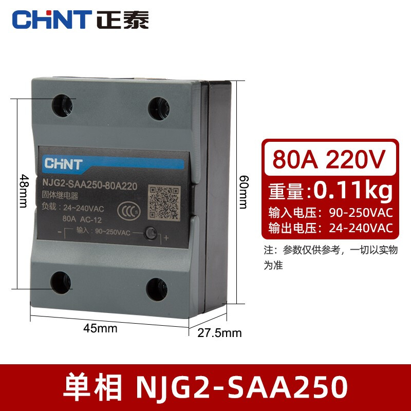 正泰(CHNT)NJG2-SAA250-80A220 单相固态继电器 交流控交流式