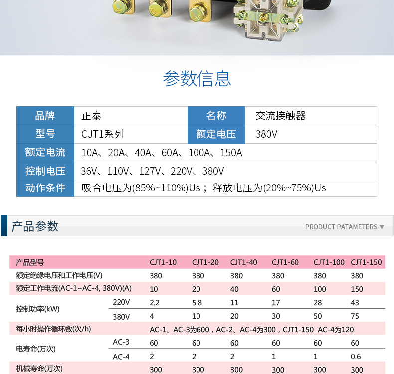 正泰CJT1-10交流接触器380V 220V 110V 20A 40A 10A接触器CDC10 CJT1-20 127V