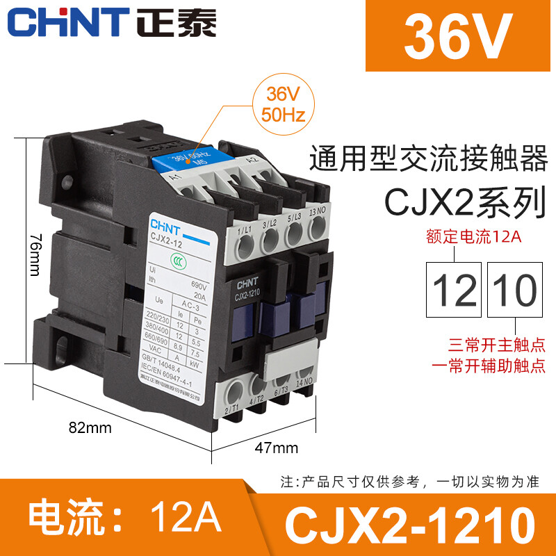 正泰(CHNT)CJX2-1210 36V 交流接触器 12A接触式继电器