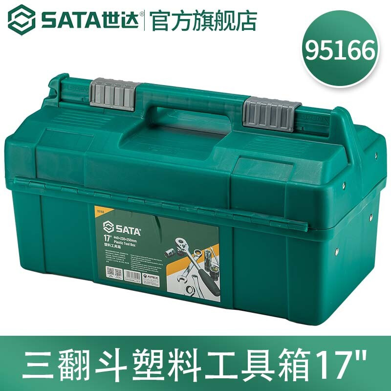 世达(SATA) 塑料工具箱单双层家用收纳盒95161-95166 三翻斗塑料工具箱17寸/95166