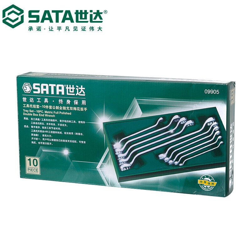 世达(SATA) 工具托套装套筒扳手钳类锉刀螺丝批套筒快扳 09901-09915 10件全抛光双梅花扳手09905