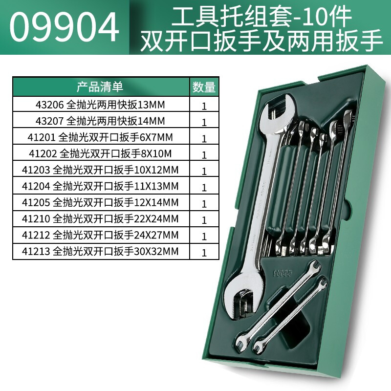 世达(SATA) 工具托套装套筒扳手钳类锉刀螺丝批套筒快扳 09901-09915 10件双开口扳手及两用扳手09904