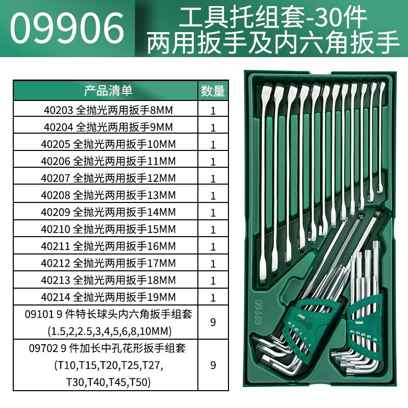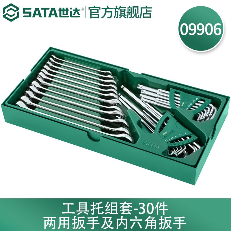 世达(SATA) 工具托套装套筒扳手钳类锉刀螺丝批套筒快扳 09901-09915 30件两用扳手及内六角扳手09906