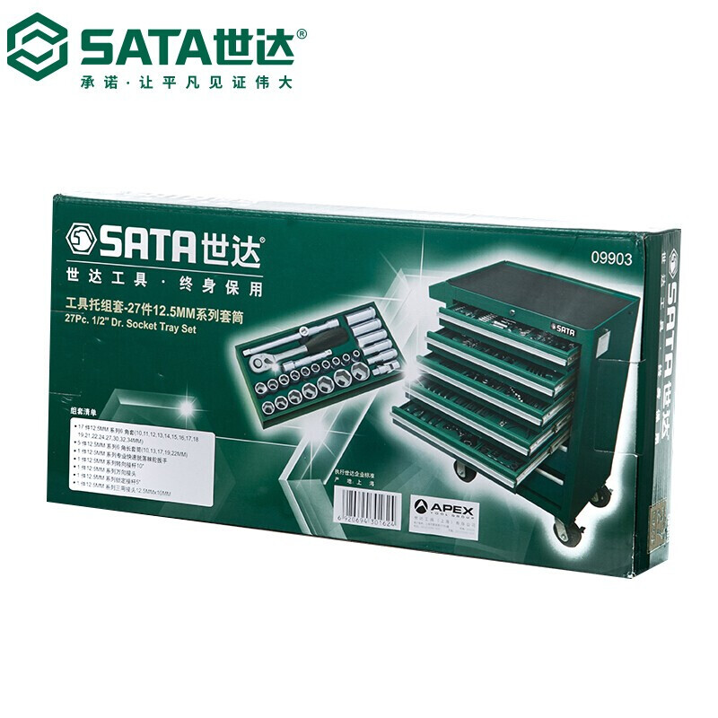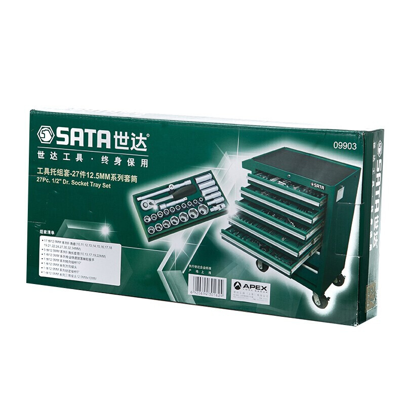 世达(SATA) 工具托套装套筒扳手钳类锉刀螺丝批套筒快扳 09901-09915 27件12.5MM系列套筒09903