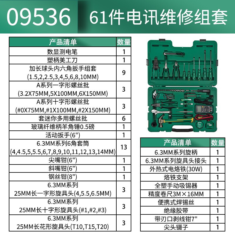 世达(SATA)09536 61件电讯维修组套电工维修套装 09536 61件电讯维修组套