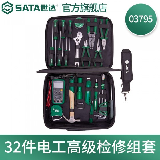 世达(SATA)五金工具多功能电子电工家用物业维修工具箱套装包组合03710 世达工具32件电工检修组套03795