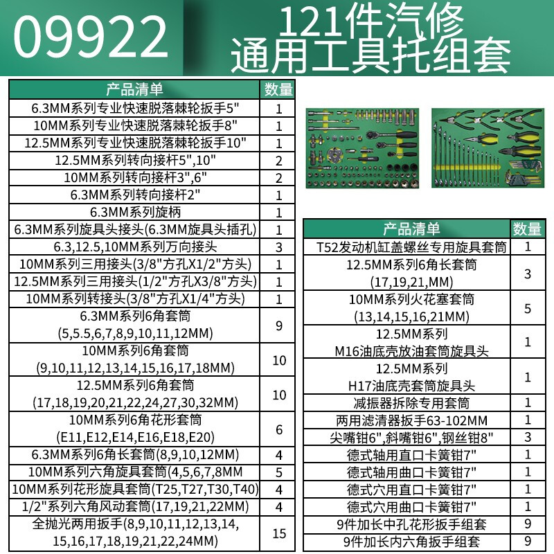 世达(SATA)09922 121件汽修通用工具托组套 09922 121件汽修通用工具托组套