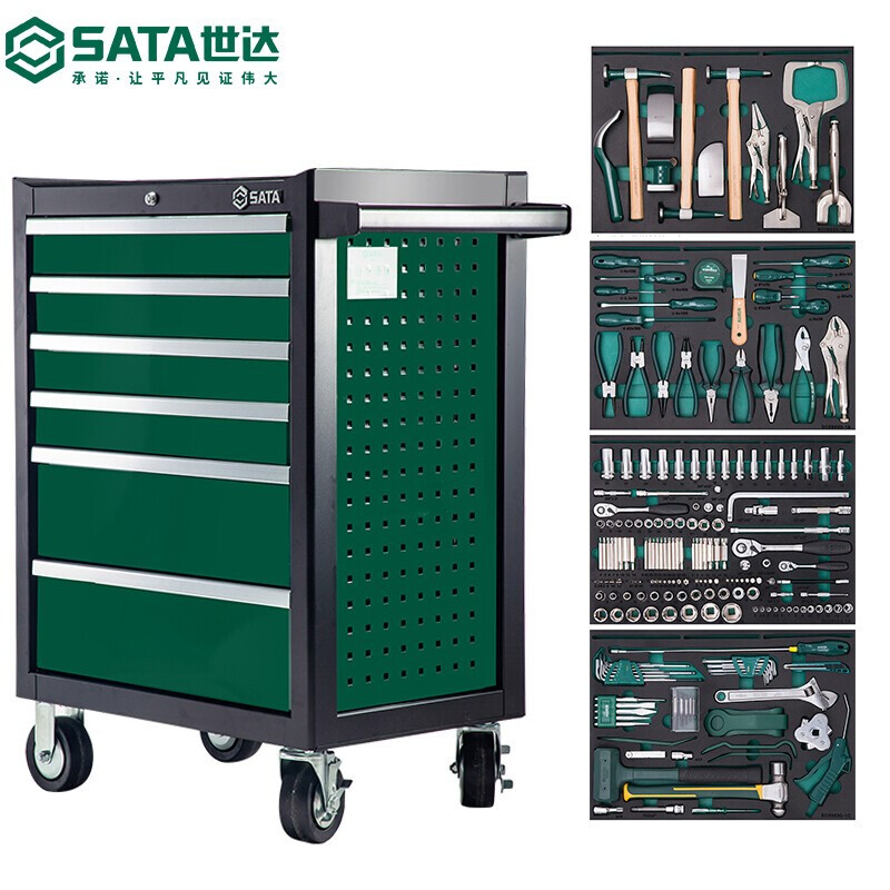 世达(SATA)09930/09931/09932 通用机修工具车组套+6抽屉工具车 定制 09930 249件通用钣金组套+工具车